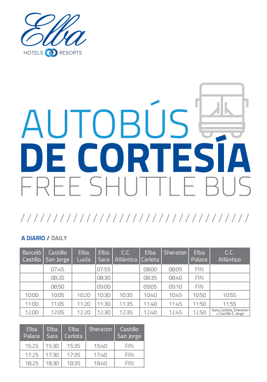 | Barceló Castillo | Elba Castillo San Jorge | Elba Lucía | Elba Sara | C.C. Atlántico - Plage | Elba Carlota | Sheraton | Elba Palace | C.C. Atlántico - Plage |